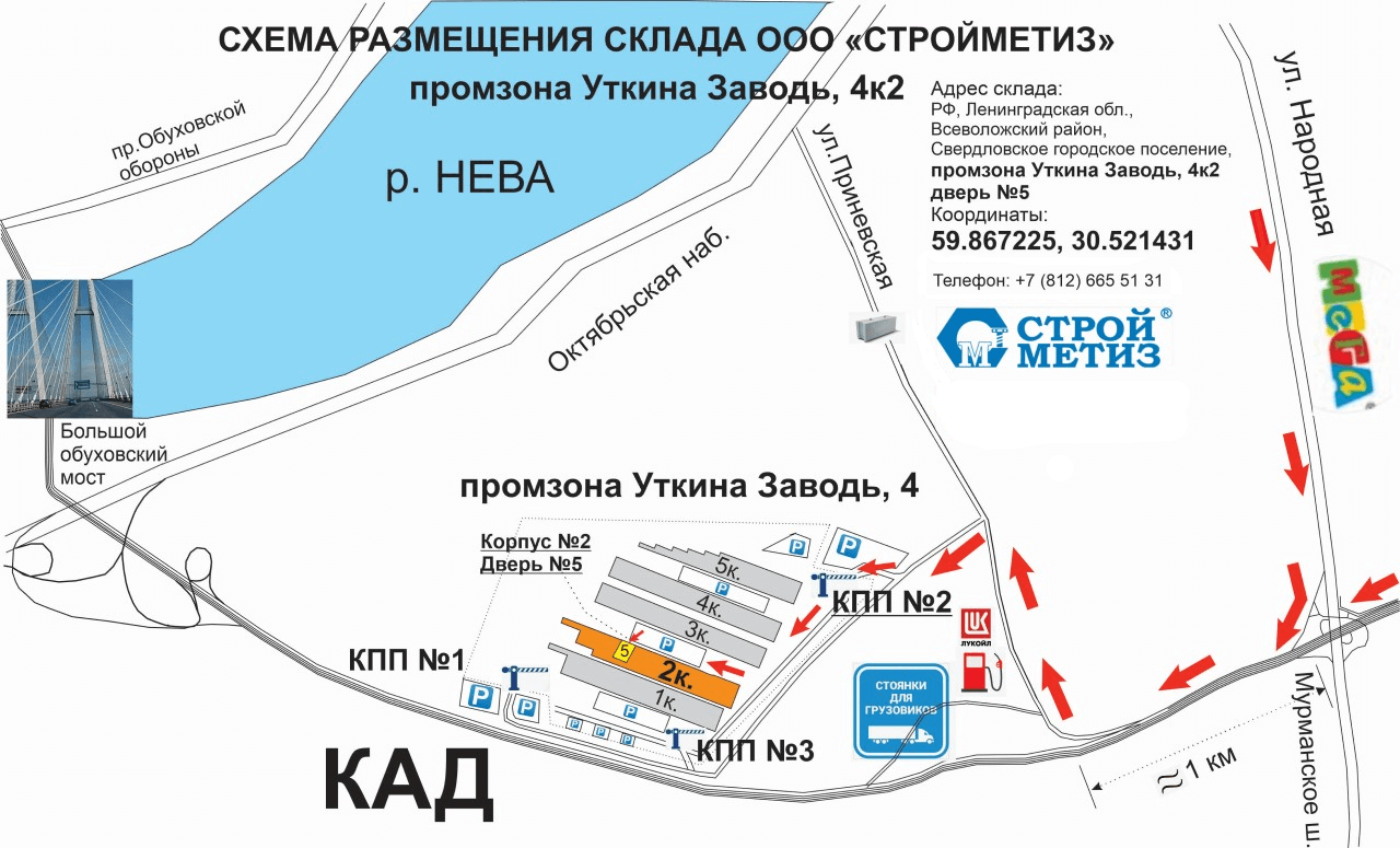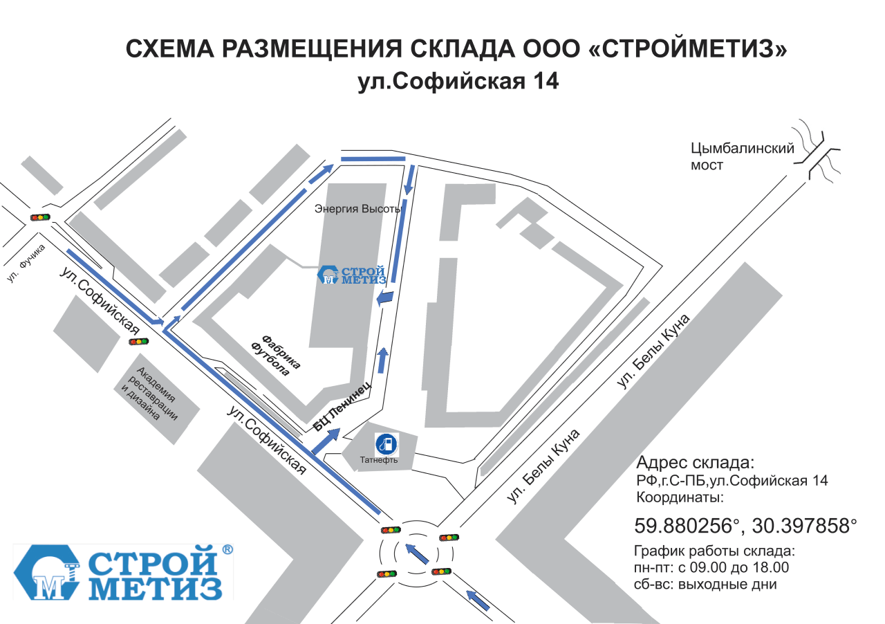 Склад «Стройметиз» находится вблизи крупнейших транспортных развязок. Заранее (не менее чем за сутки) сообщите нашему менеджеру об удобном времени погрузки, мы подготовим заказ точно в срок.
